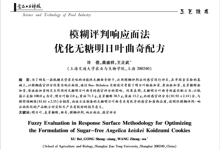 模糊评判响应面法优化无糖明日叶曲奇配方